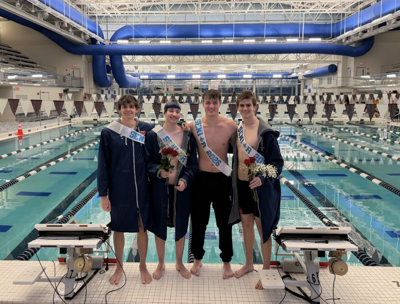 At the RUSD Aquatic Center on Tuesday, the team celebrated seniors Nathan Breit, Jack Borzynski, Nolan Mrotek, and Joshua Utley in a dual meet against Racine Unified.
