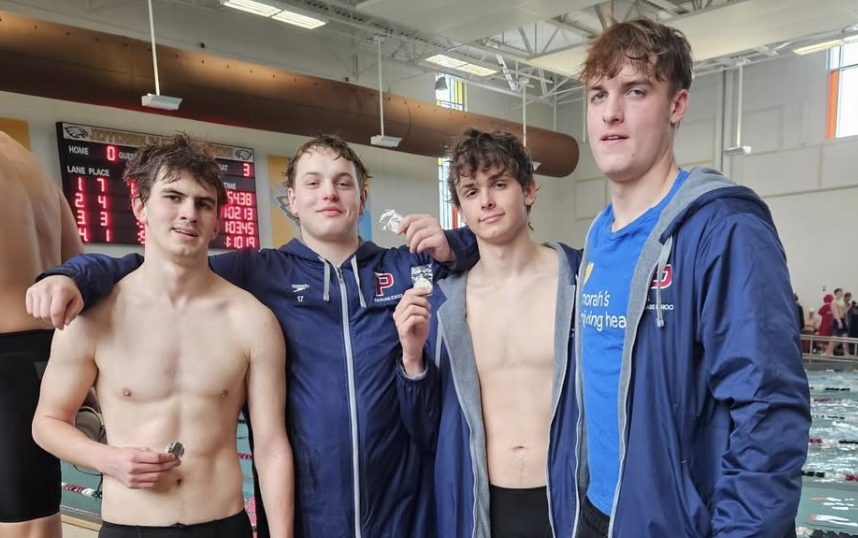 Second place finishes were earned in the 200 Medley Relay (Nathan Breit ’26, Nolan Mrotek ’26, Borzynski ’26, Maksim Rozzoni ’28), Breit in the 100 Butterfly and 100 Backstroke, Borzynski in the 100 Freestyle, 200 Free Relay (Borzynski, Nolan Barrett ’27, Mrotek, Maksim Rozzoni), Mrotek in the 100 Breaststroke, and the 400 Free Relay (Barrett, Breit, Rozzoni, Joshua Utley ’26).